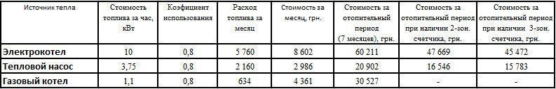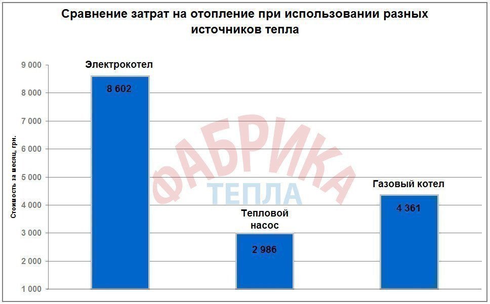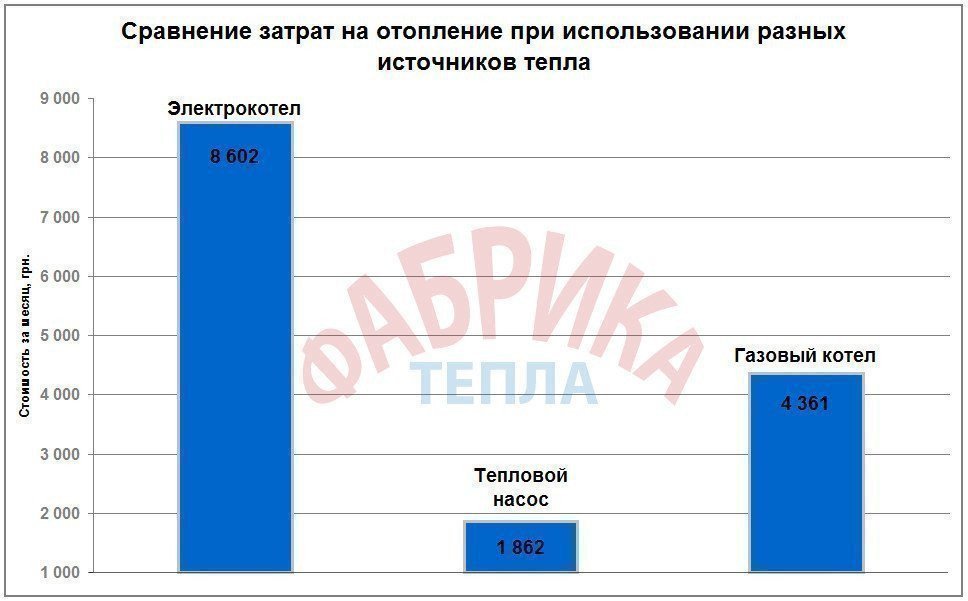 Экономия средств при использовании в качестве источника тепла теплового насоса по сравнению с электрическим отоплением - в 2,88 раза, с газовым - 1,46.