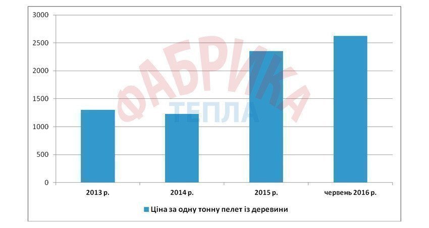Ціна пелет варіюється в залежності від типу і якості сировини. Звичайно, найефективніше опалювати домівку пелетами із деревини. Тонна пелет із деревини в 2014 році коштувала в середньому близько 1230 грн., проте вже в червні 2016 року – 2624 грн. За два роки ціна зросла на 200%.