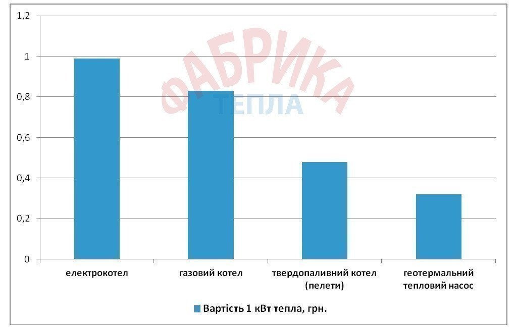 Економічна ефективність при використанні геотермальних теплових насосів в порівнянні з природнім газом, пелетами з деревини та електрокотлами зображена на рис. 4.